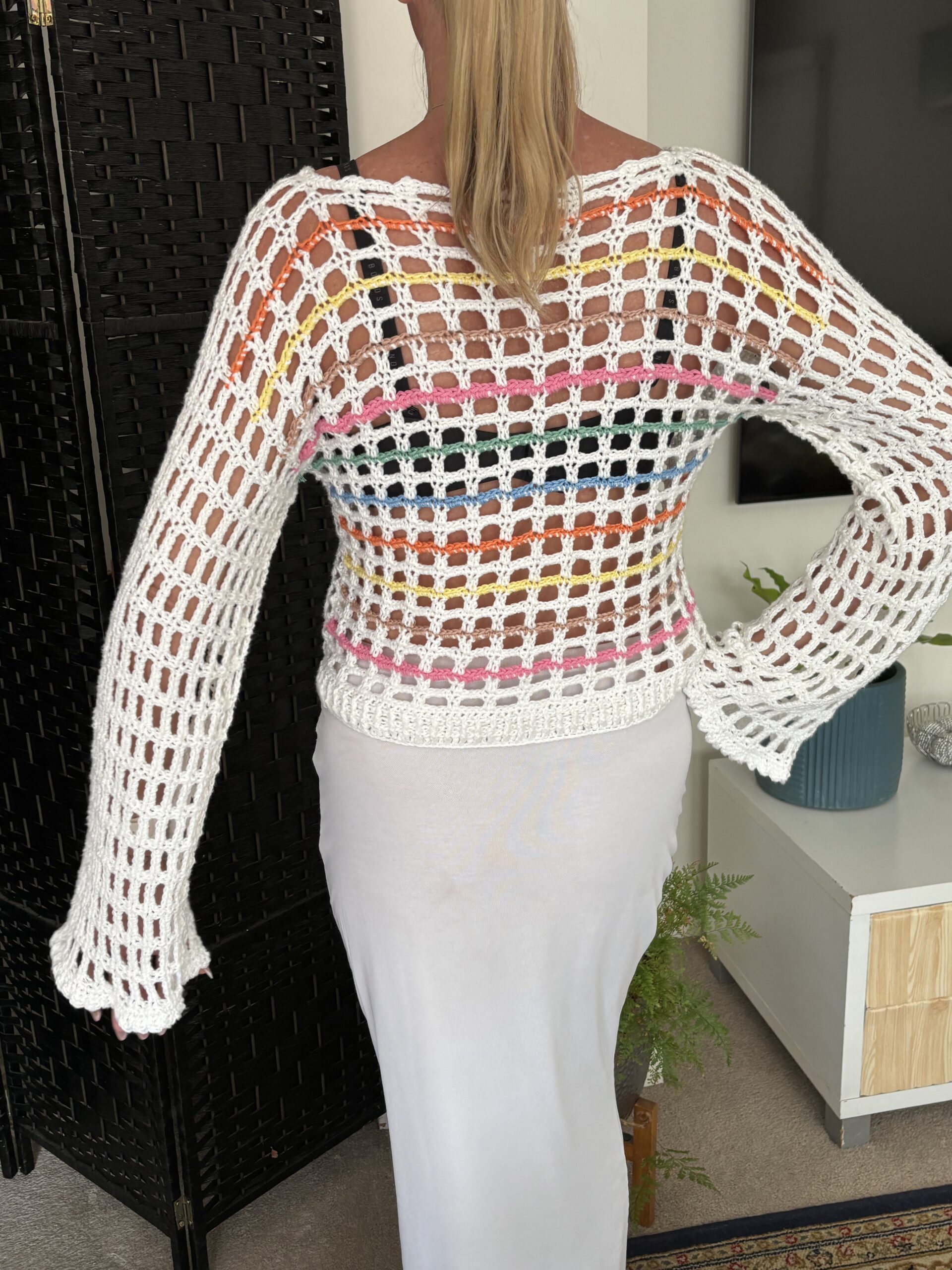 Crochet garments naturally have stretch, especially with cotton blends.