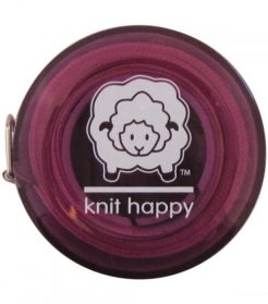 Knit Happy Tape Measure is the perfect compact size and knitting bag accessory. Featuring the Knit Happy logo, 6 feet of metric and imperial measurements, and button retraction.